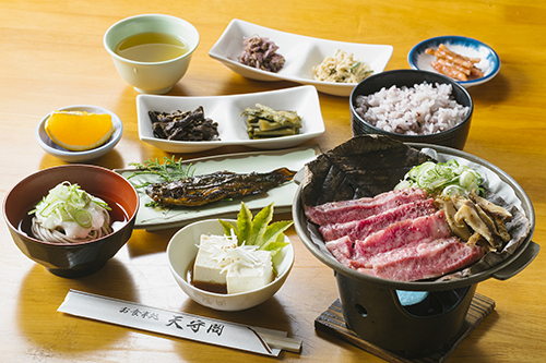 豊かな土ときれいな水で育ったお米や野菜、四季折々の野菜・山菜、飛騨や郷土の食材を中心とした田舎料理、白川郷のぬくもりの味をお楽しみください。ご予約のお客様のみご利用いただけます。