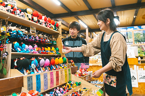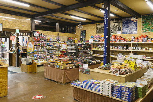 白川郷のお菓子・民芸品・ご当地限定商品など広い店内に豊富に取り揃えております。また「てんぼうだいのおみやげやさん」限定商品も多数ご用意しております。クレジット・QR決済可能、全国発送も承っております。